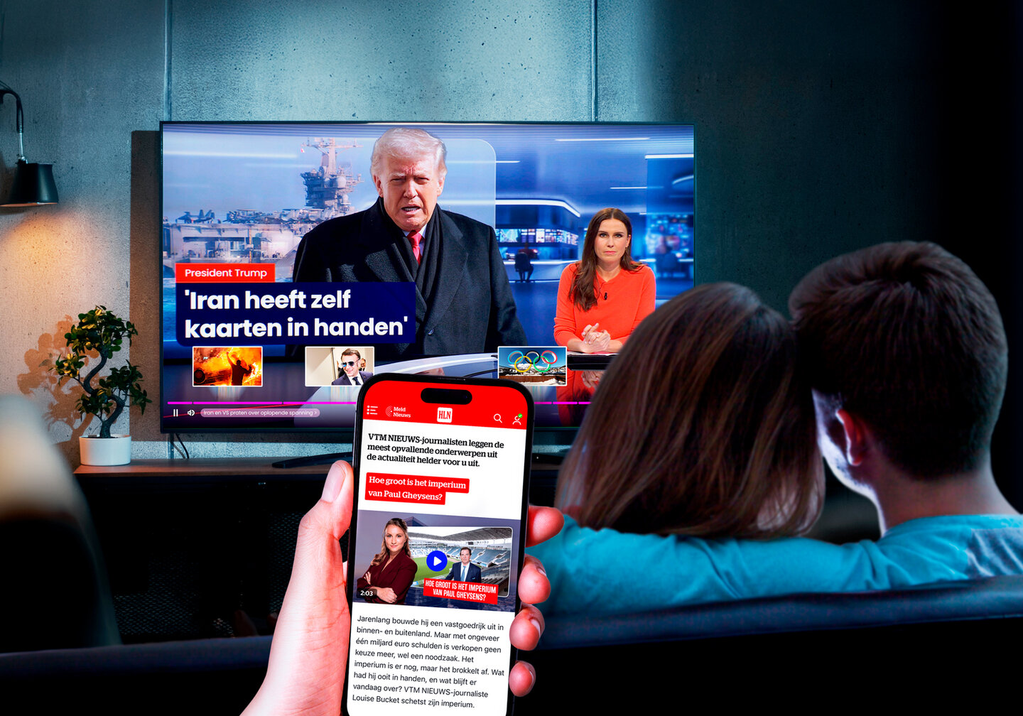 elk woord of gevoel associeer je met VTM NIEUWS?’ Die vraag stelden we eind 2024 in een onderzoek aan Vlamingen. Wat vaak terugkwam, was ‘verbindend’. ‘Verbindend’ op een brede schaal, maar ook thuis in de woonkamer zorgen we met ons nieuws voor gesprekken die generaties en meningen bij elkaar brengen.